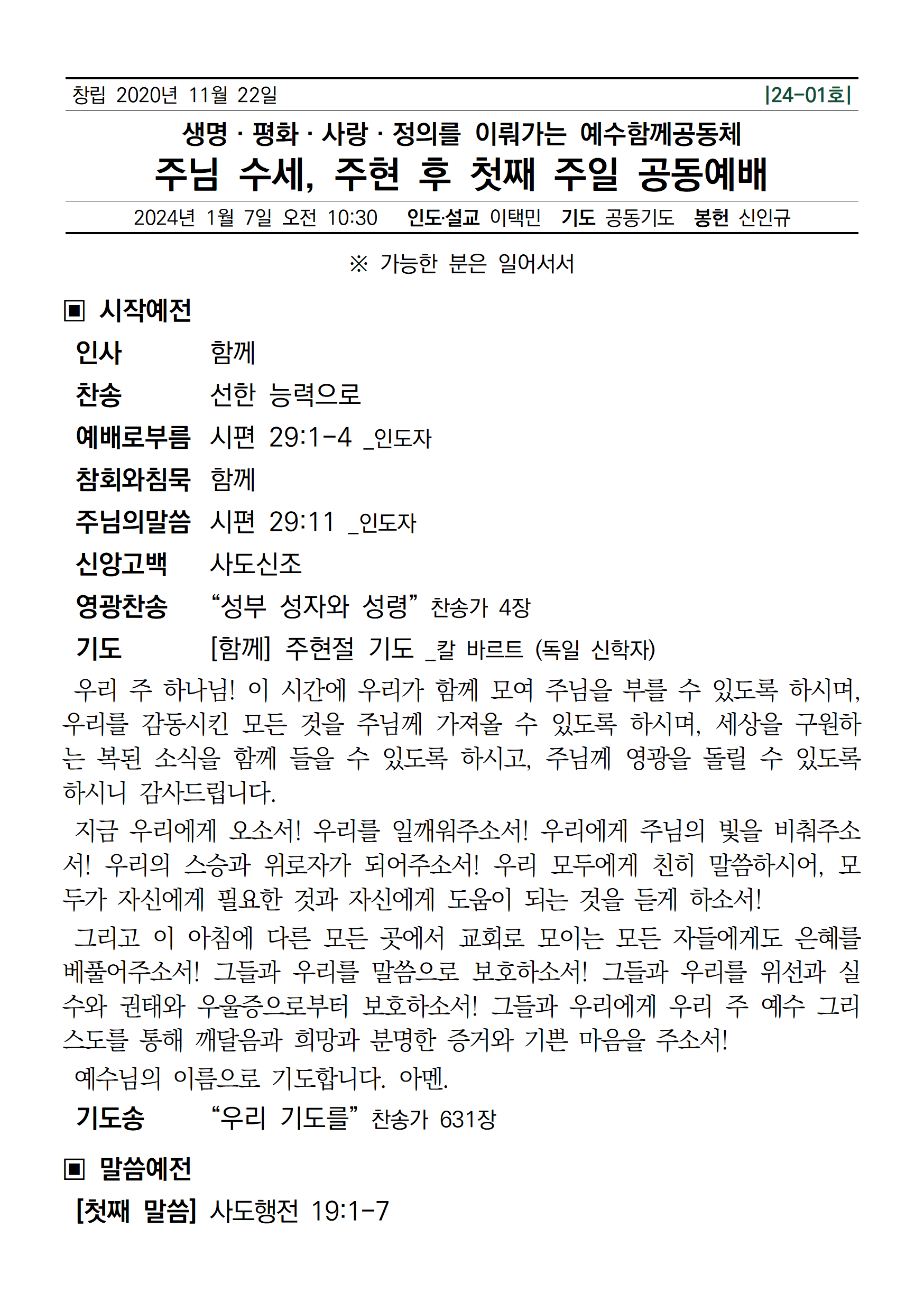 | [주일공동예배] 2024년 1월 7일 예수함께공동체 (0) | 2024.01.06 |