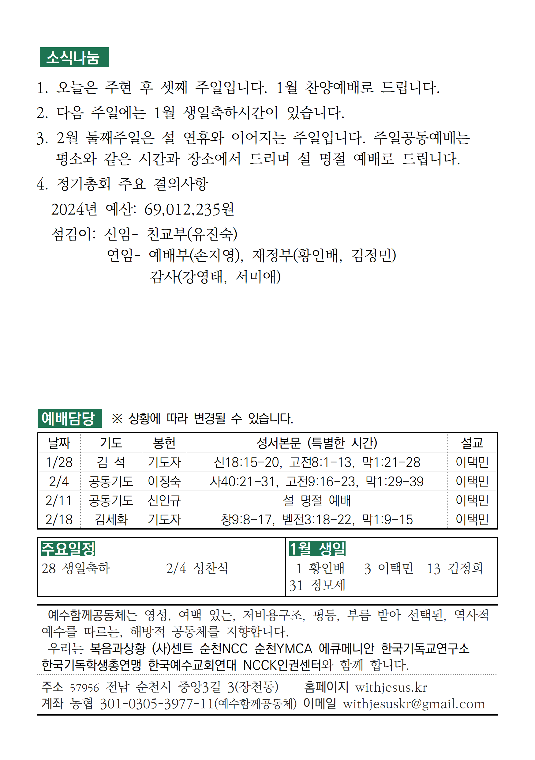 [주보] 2024년 1월 21일 예수함께공동체