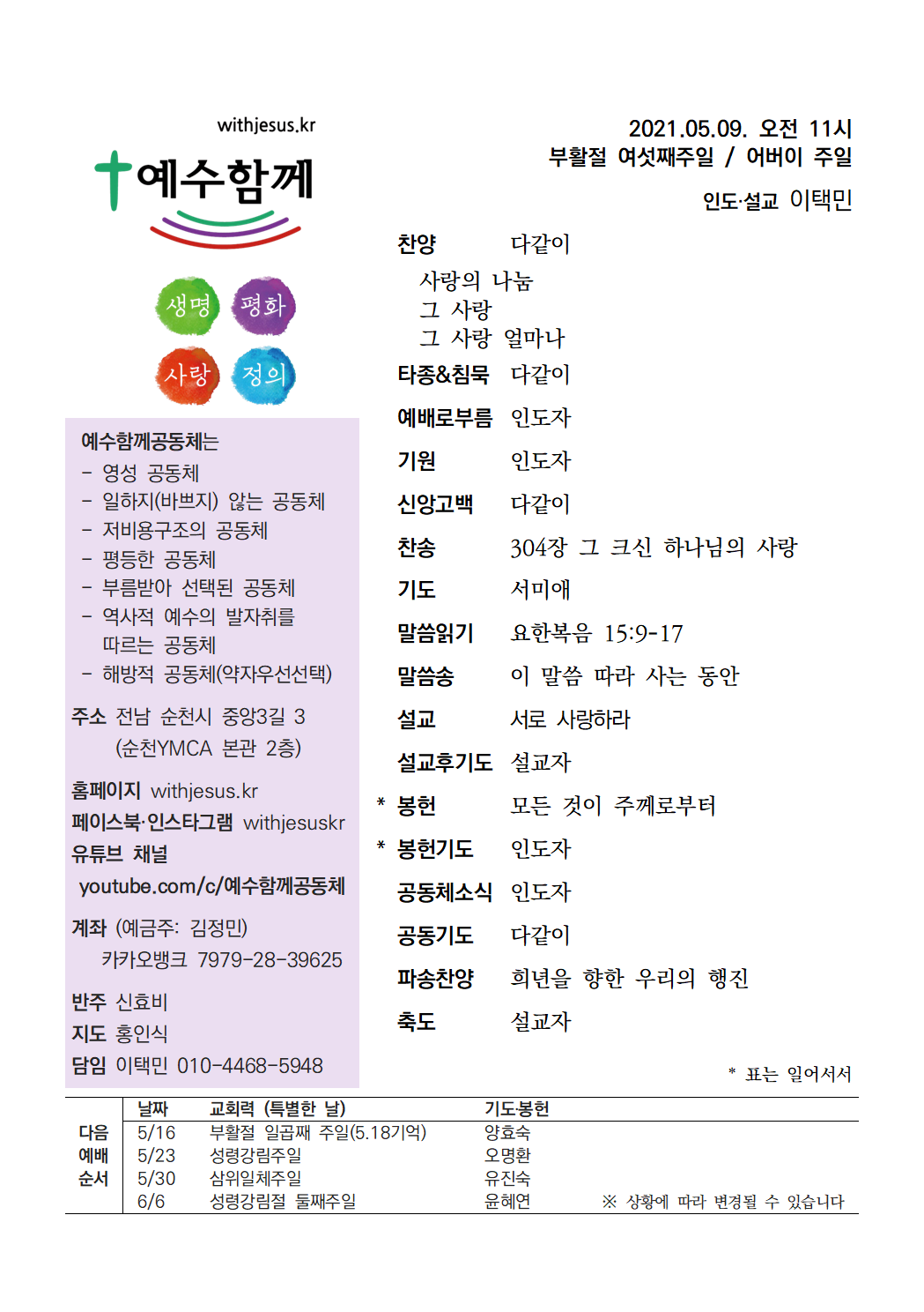 | 2021년 5월 16일 주일예배 자료 (0) | 2021.05.15 |