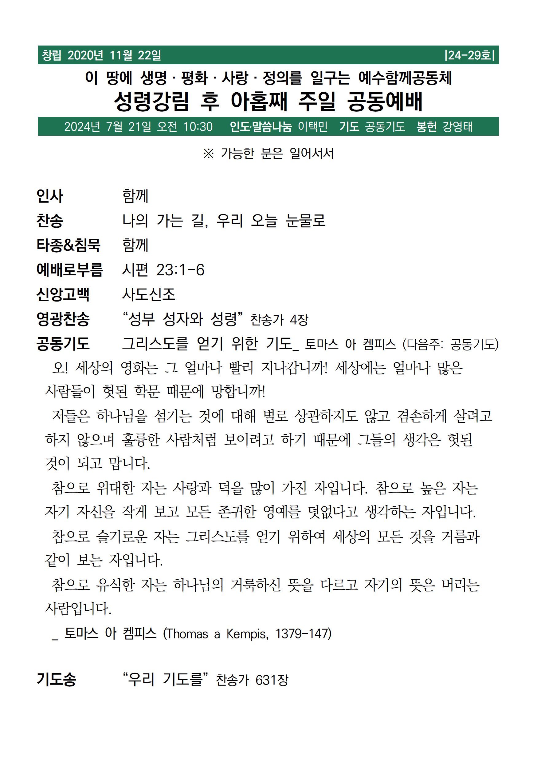 예수함께 예배 [주보, 악보] 2024년 7월 21일 예수함께공동체 withjesus 2024. 7. 20. 12:26 이전다음 0123 * 주보 jubo_24_29.pdf 0.14MB * 악보 music_20240721.pdf 0.52MB