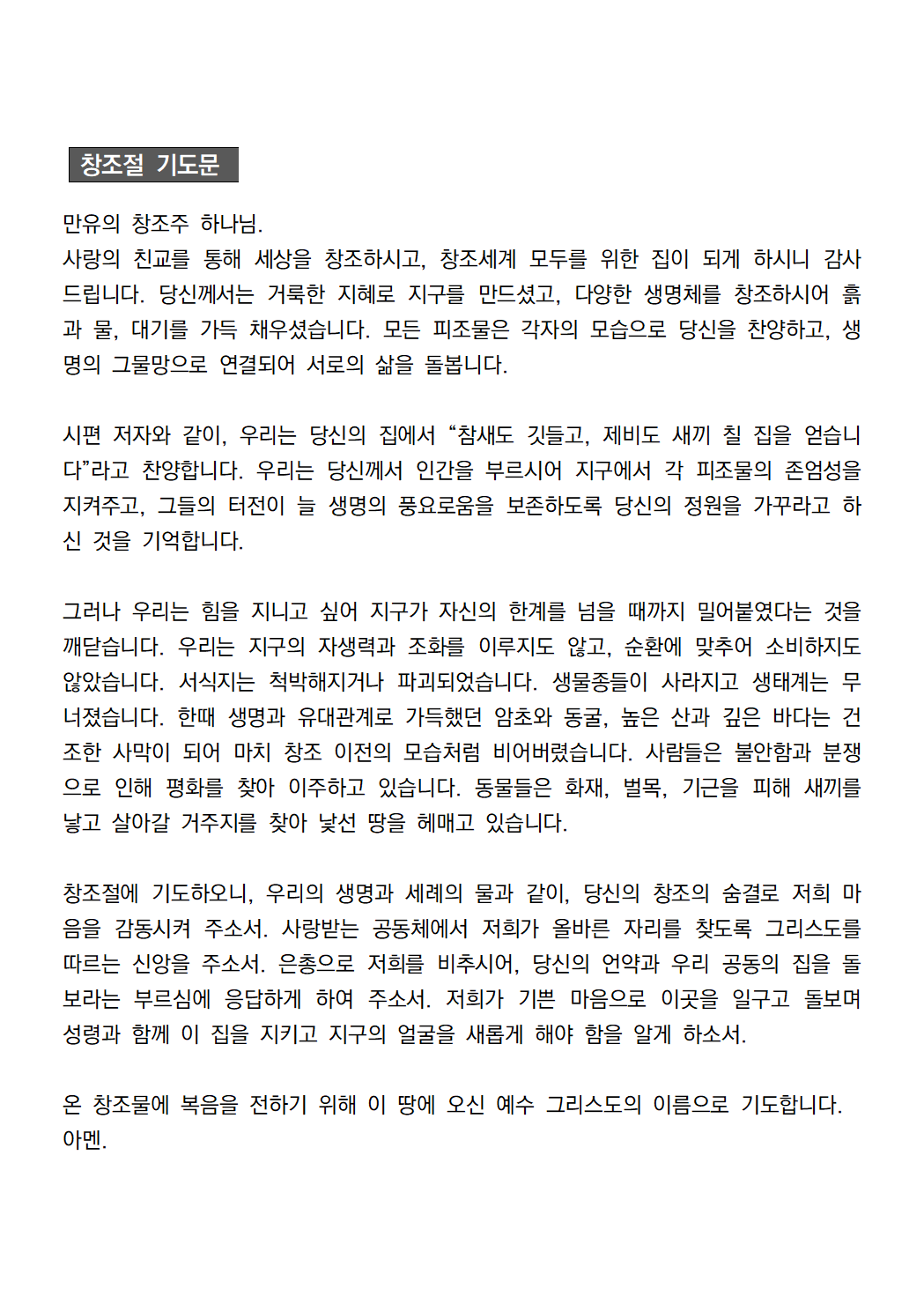 3. 예배순서지 (창조절 예배 순서를 포함하고 있습니다)