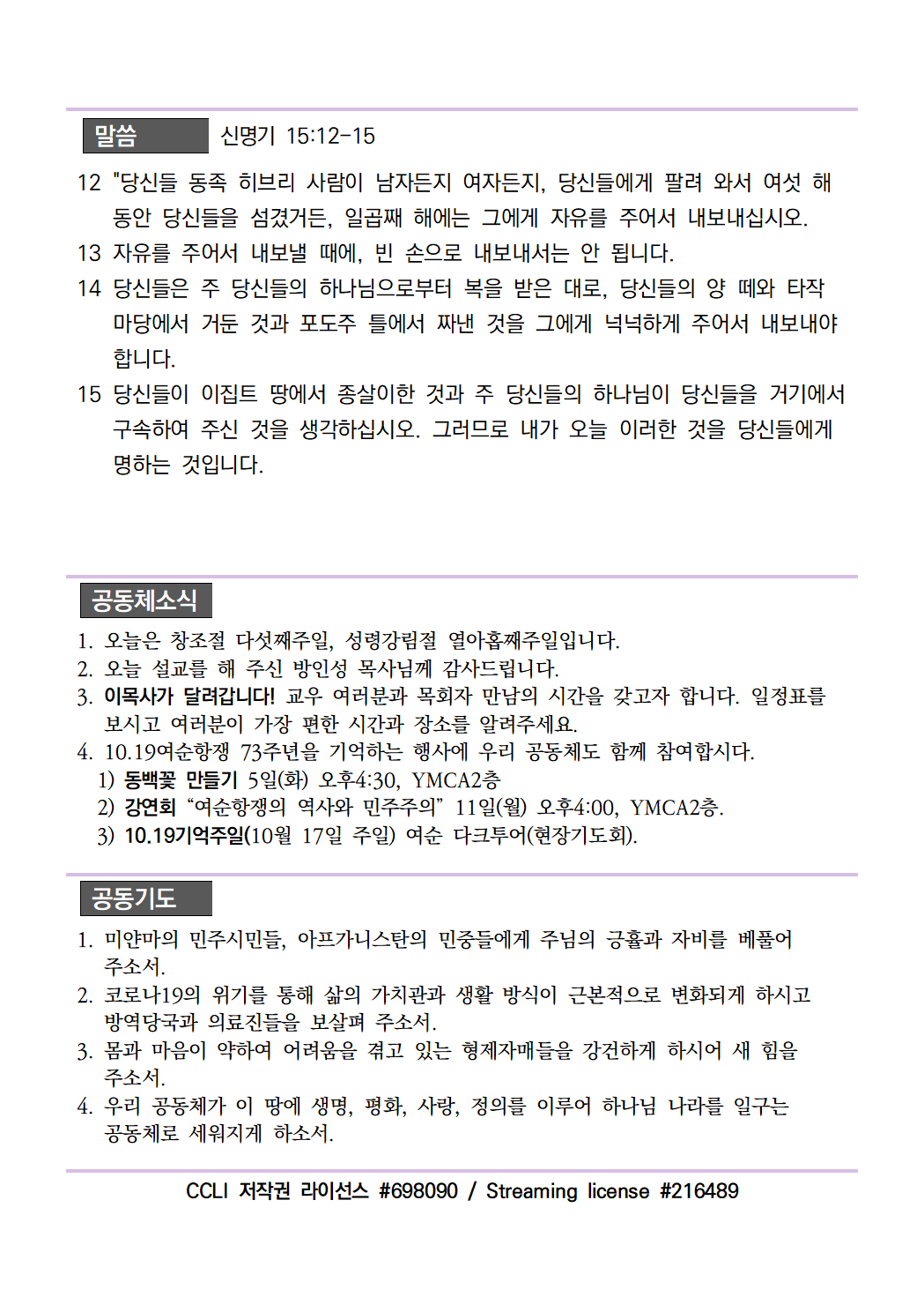 예수함께 예배 2021년 10월 3일 주일예배 자료 withjesus 2021. 10. 2. 23:42 1. 예배찬양 예수함께주일찬양_20211003.pdf 0.38MB 2. 예배ppt 예수함께예배_20211003.pptx 4.73MB 3. 예배순서지
