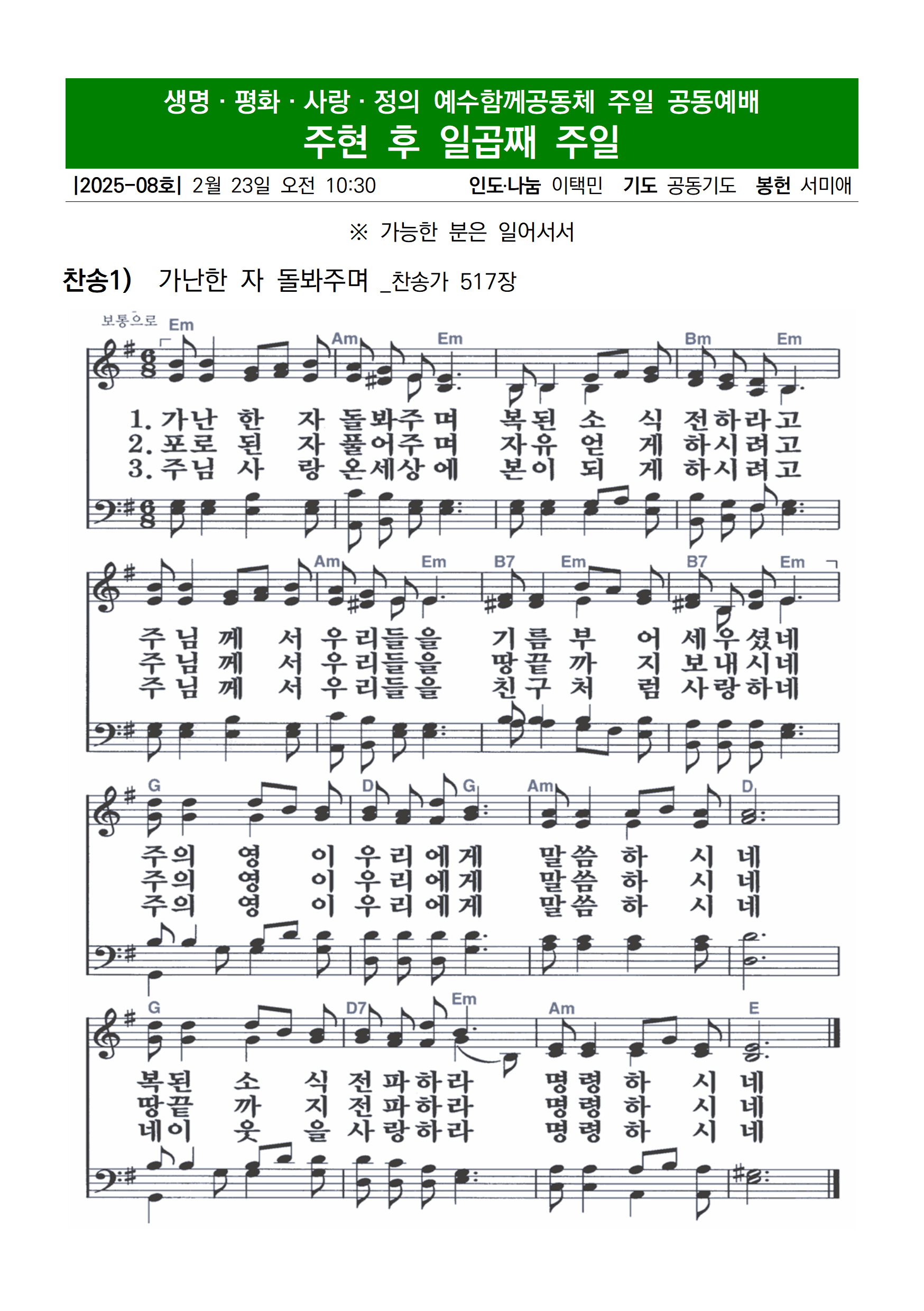 예수함께 예배 [주보] 2025년 2월 23일 예수함께공동체 withjesus 2025. 2. 22. 11:43 이전다음 0123 * 주보파일 jubo_25_08.pdf 0.29MB