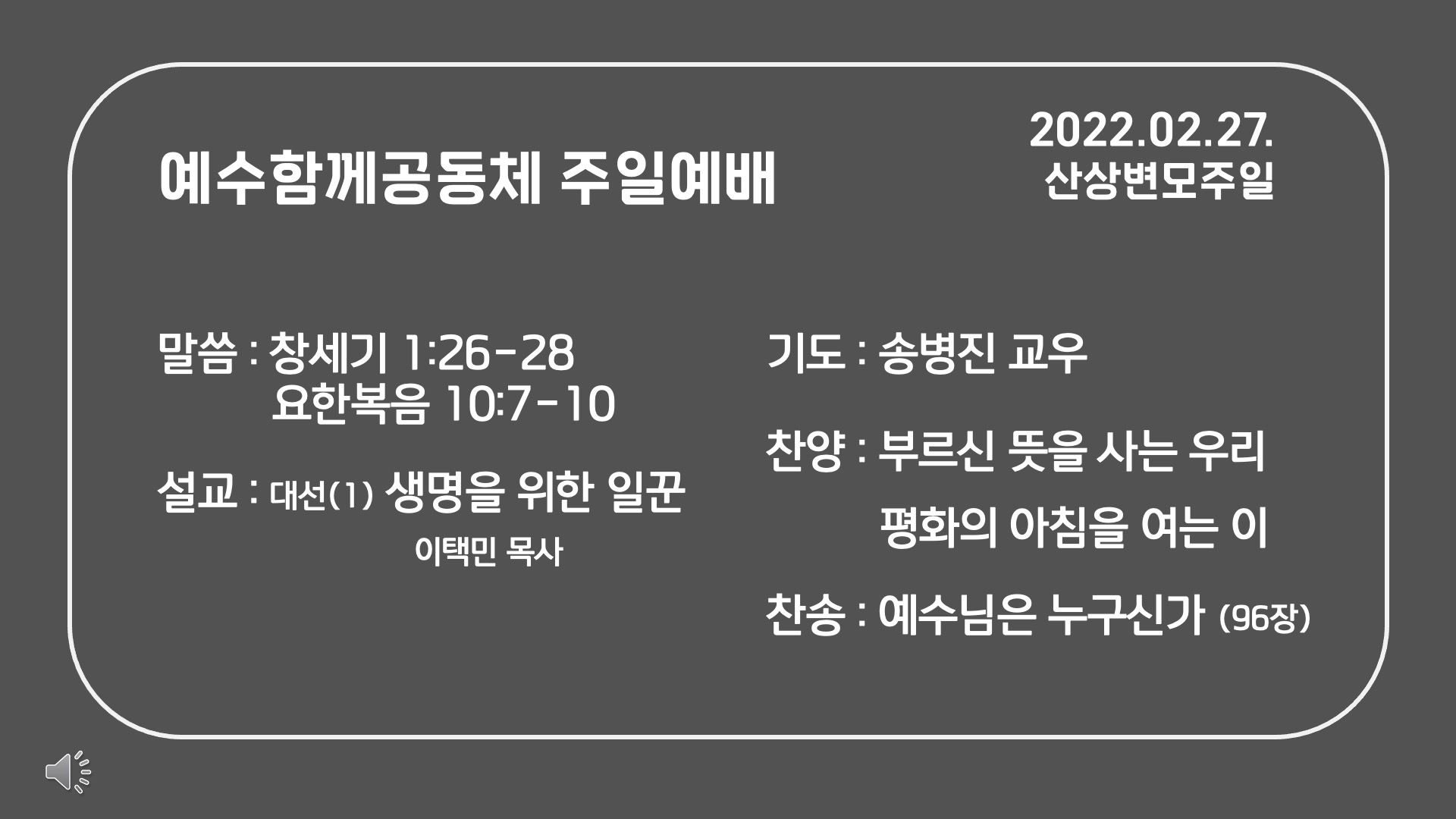2022년 2월 27일 예수함께 주일예배