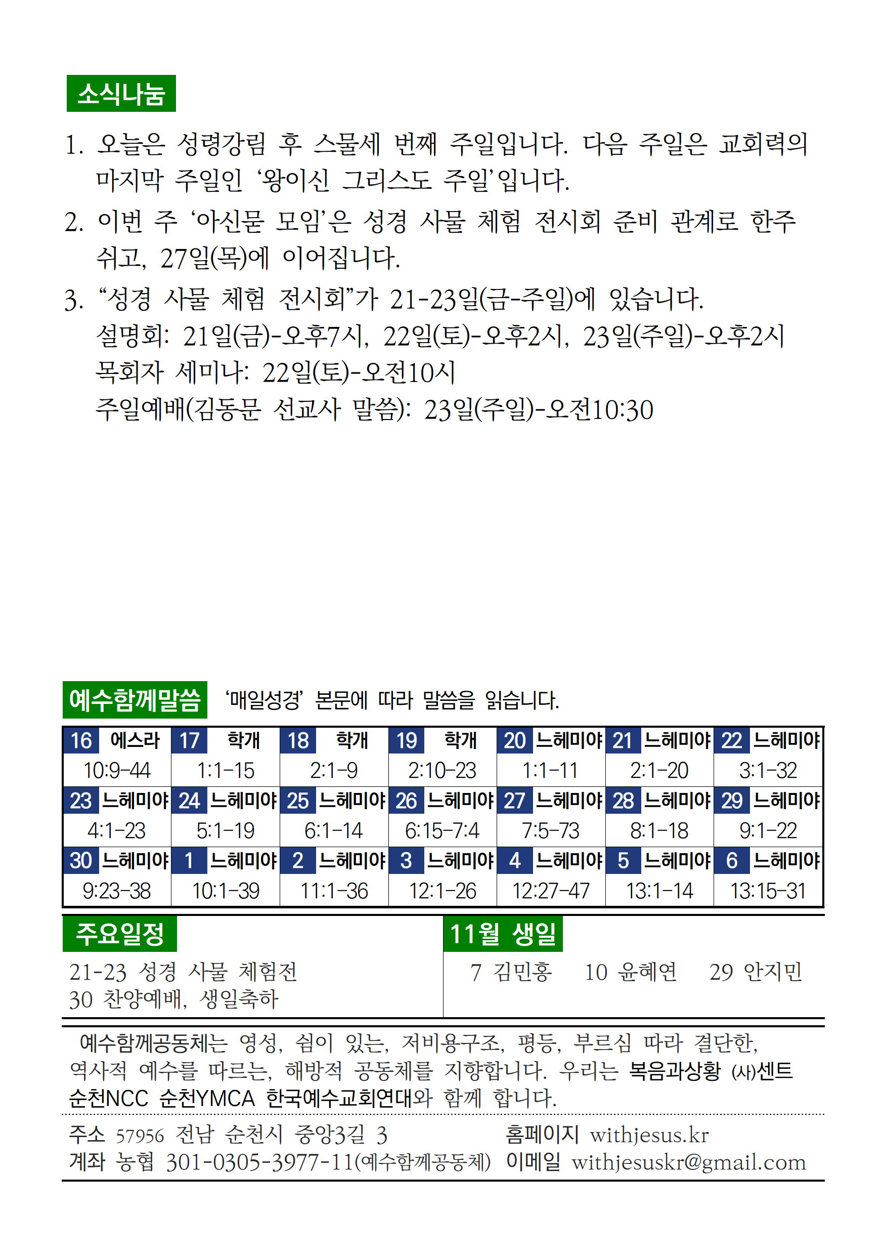 예수함께 예배 [주보] 2025년 11월 16일 예수함께공동체 withjesus 2025. 11. 15. 15:45 이전다음 0123 * 주보 파일 jubo_25_46.pdf 0.20MB * 악보 music_20251116.pdf 0.17MB