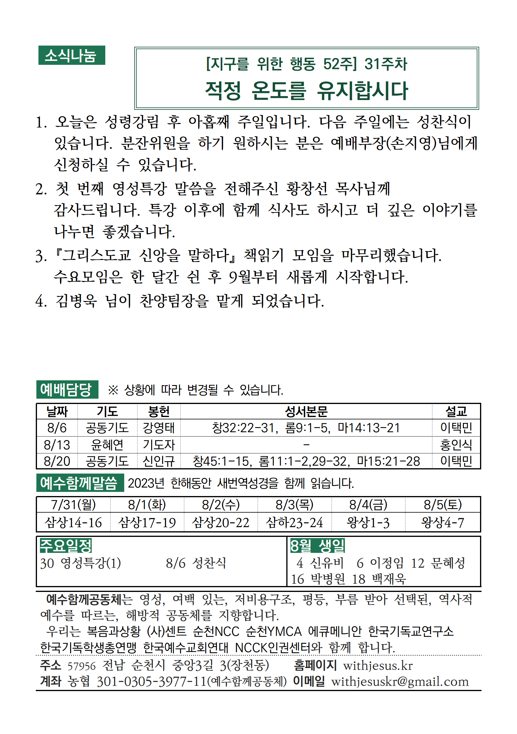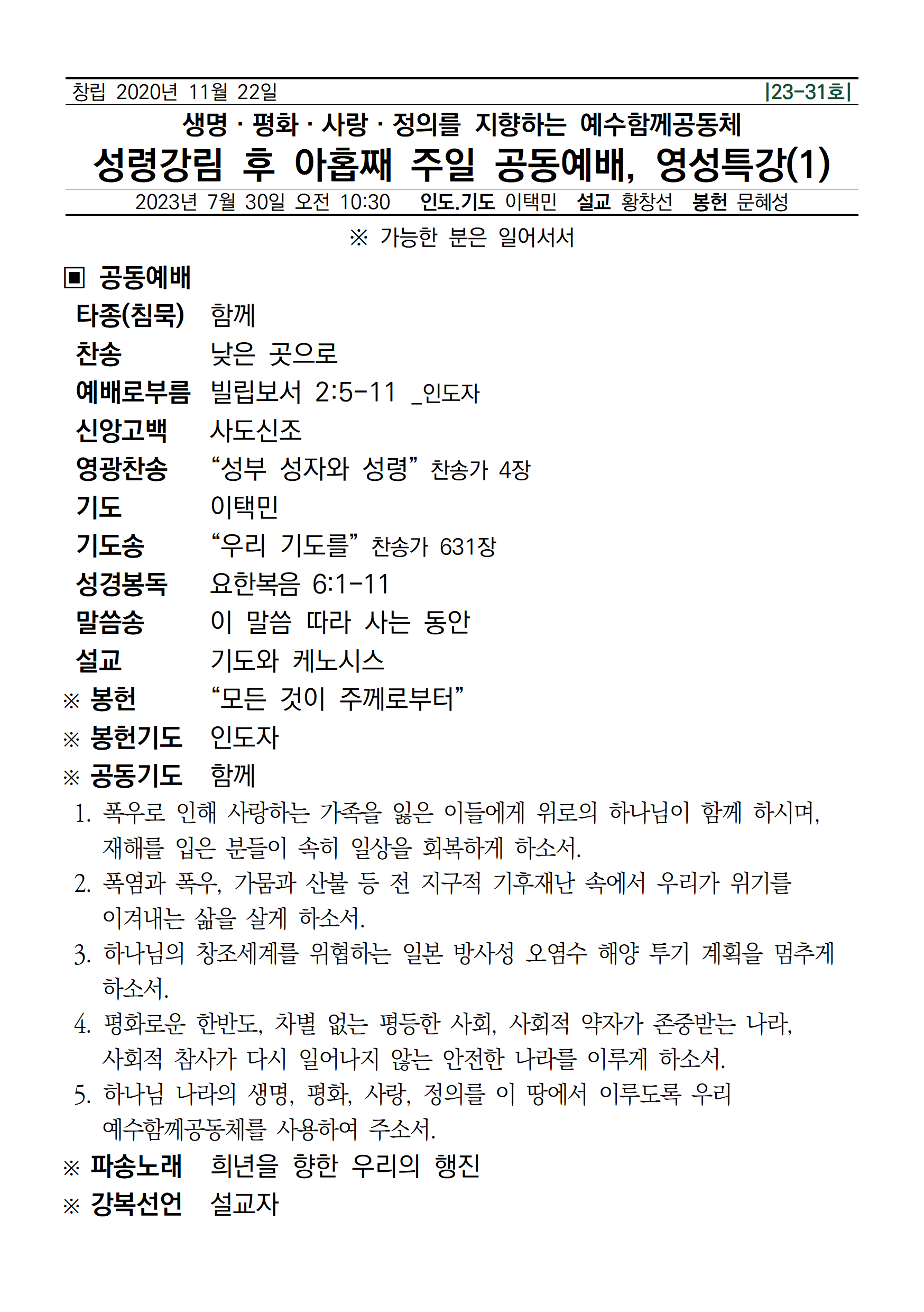[주보] 2023년 7월 30일 예수함께공동체